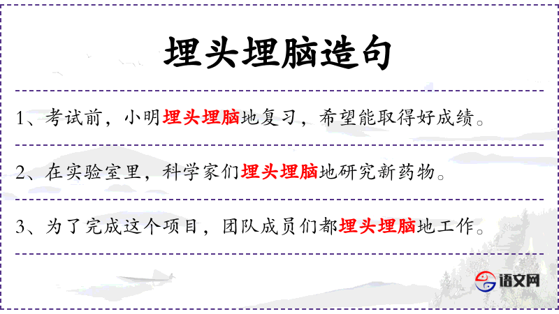 - 埋头埋脑地:形容词性短语,表示非常专注和努力。