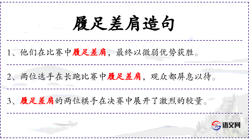 句子:“履足差肩的两支球队在决赛中展现了高水平的竞技状态。”