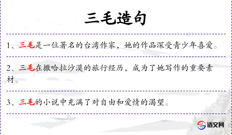 作家。原名陈平,浙江定海人。女。因喜欢漫画家张乐平创造的三毛”形象,而用作笔名。曾留学西班牙、德国、美国。回台湾后在大学任教。著有散文集《撒哈拉的故事》、《万水千山走遍》,短篇小说集《稻草人手记》、《送你一匹马》等。