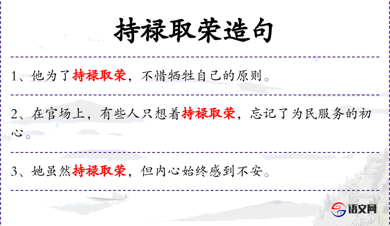 - 持禄取荣:这是一个成语,意思是保持官位并追求荣誉。