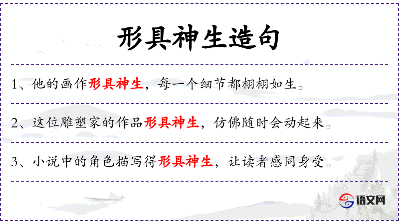 - “形具神生”是一个成语,源自**古代文学,形容事物既有外形又有内在的神韵。