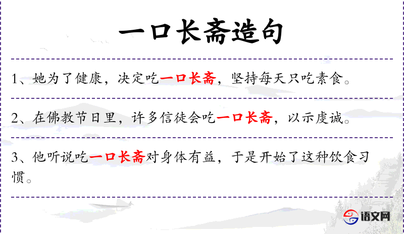 1. 【一口长斋】 - 谓长年吃素。