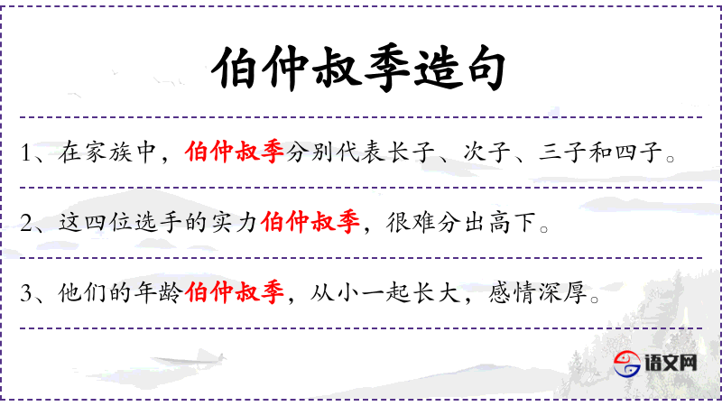 “伯仲叔季”这个表达来源于**古代的兄弟排行,反映了中华文化中对家庭和团队成员关系的重视。这个成语的使用也体现了对传统文化的尊重和传承。