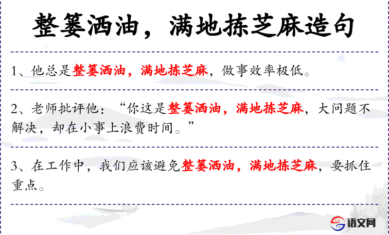 - 整箩洒油:比喻做事不精细,浪费资源。