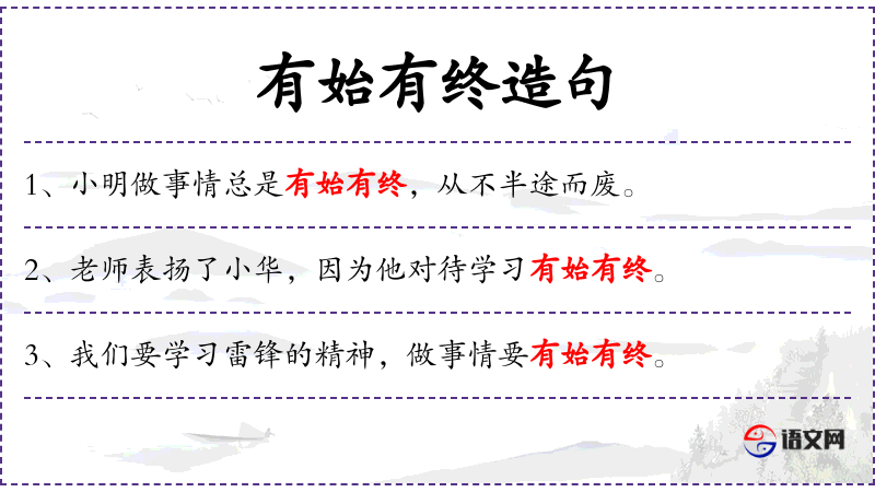 2. 【有始有终】 - 有开头也有收尾。指做事能坚持到底。
