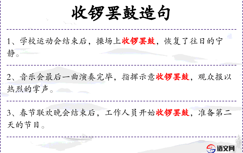 - 收锣罢鼓:指结束打击乐器的演奏。