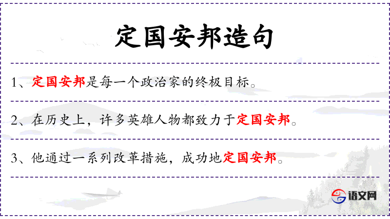 - 定国安邦:指通过各种手段确保国家的安定和繁荣。