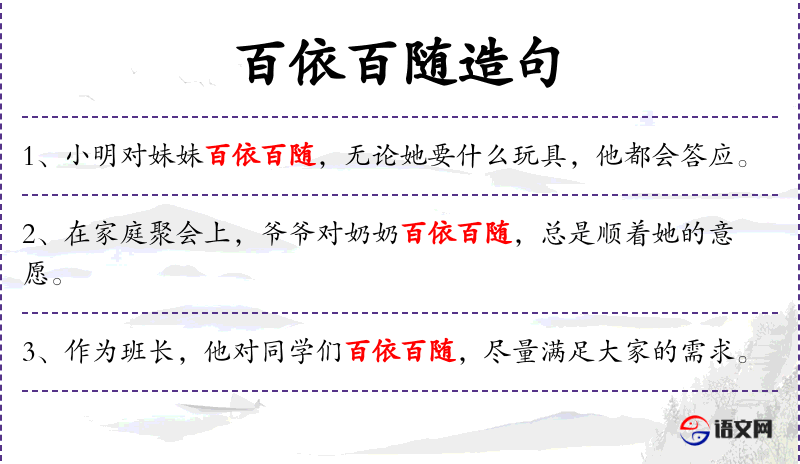 1. 【百依百随】 - 形容什么都顺从。