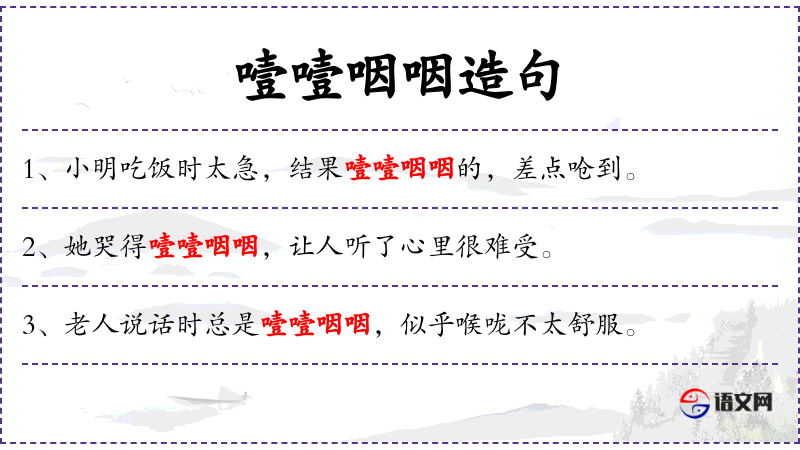 - 噎噎咽咽:形容词,描述吃东西时的声音或状态,可能是因为吃得急或食物不易下咽。