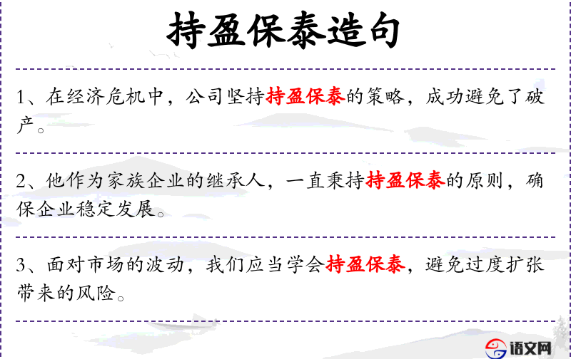- 持盈保泰:成语,意思是保持充裕和稳定。