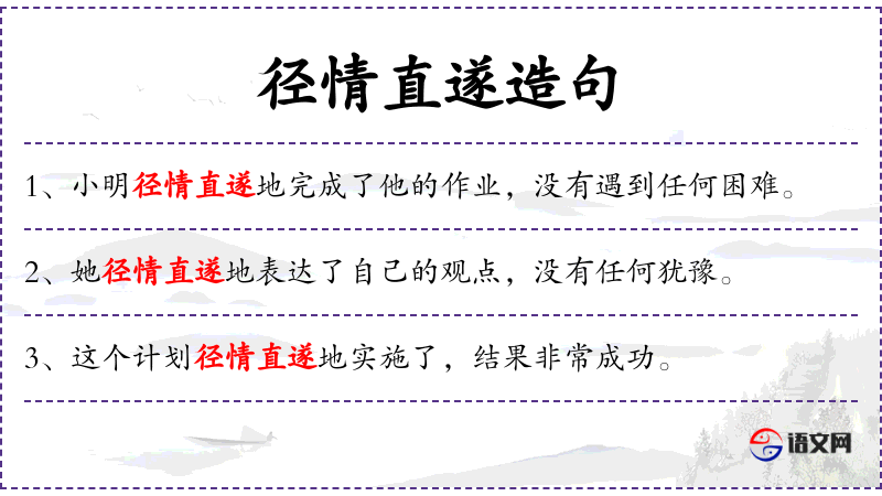 - 径情直遂地:直接、迅速地,形容回答问题的方式。