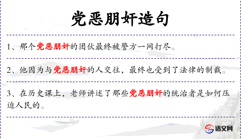 - 党恶朋奸:指与恶人结党,与奸诈之人交友。