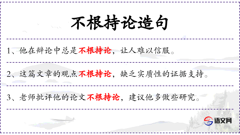 - 不根持论:这里的“根持论”可能是“支持论点”的误用,正确的表达应该是“不支持论点”。