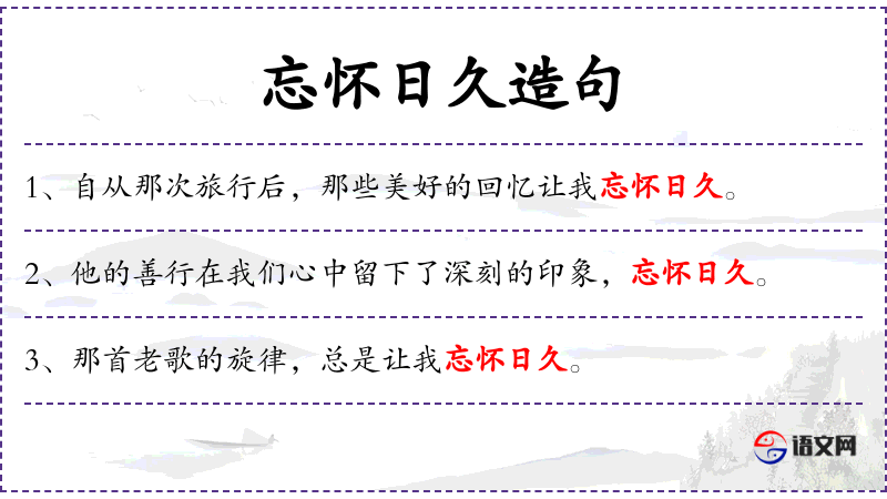 句子:“自从那次旅行后,那些美好的回忆让我忘怀日久。”