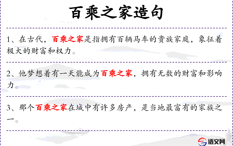 1. 【百乘之家】 - 百乘:兵车百辆。指古代士大夫之家。
