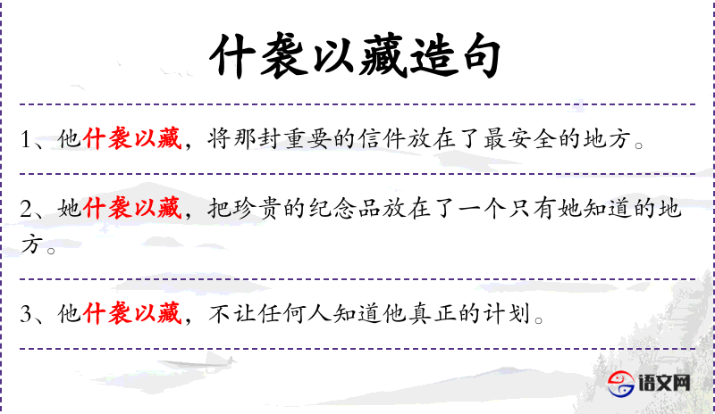 - 什袭以藏:成语,意思是将某物严密地收藏起来,不让别人发现。