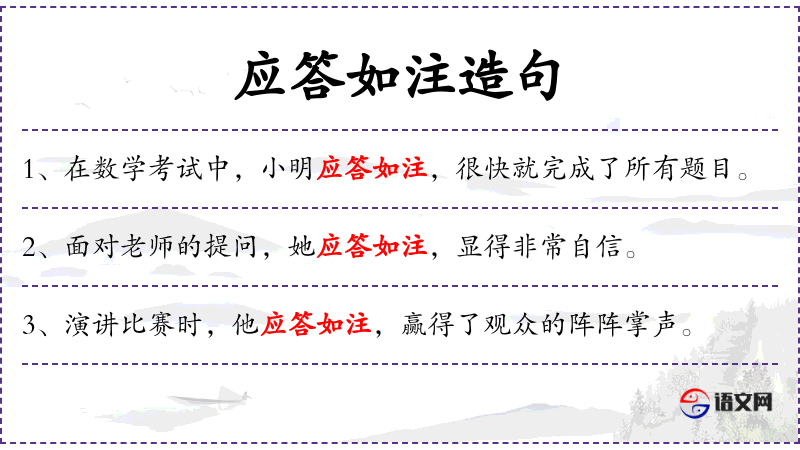 - 相关成语:“应答如流”是与“应答如注”相似的成语,都形容回答问题非常流畅。