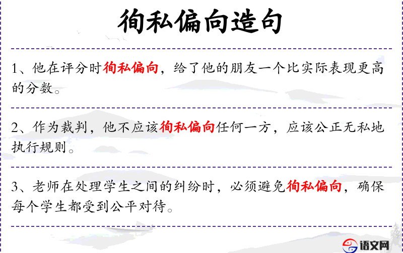 - 徇私偏向:指为了私利而偏袒某人或某事。