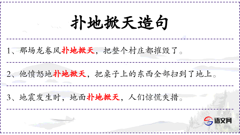 - 谓语:“扑地掀天”和“造成了”