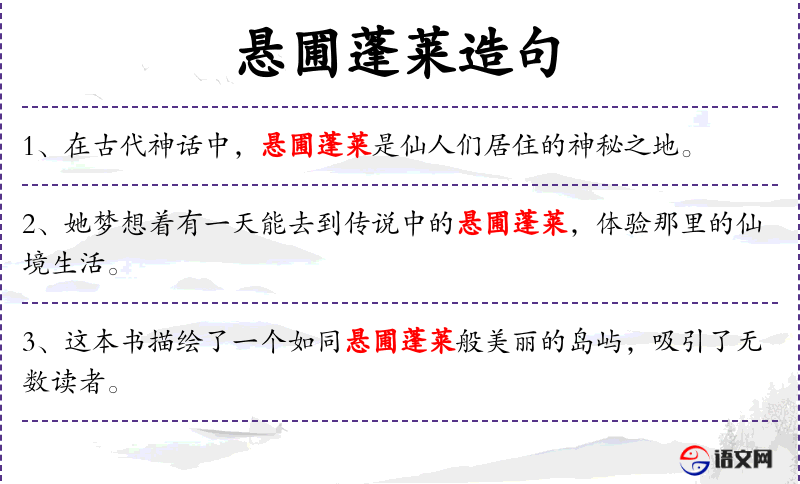 - 成语典故:悬圃蓬莱源自**古代神话,与仙境、长生不老等概念相关。