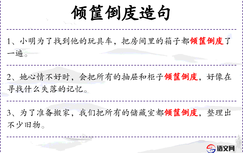 - 谓语:倾筐倒庋