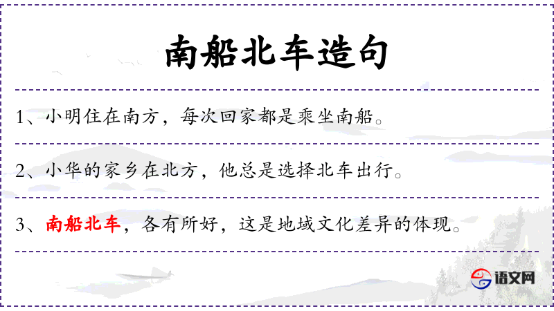 这句话反映了古代*南北方地理环境和文化俗的差异。南方水系发达,船只成为主要交通工具;北方平原广阔,车辆更为常见。