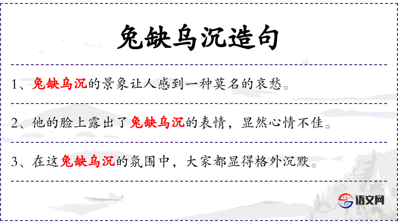 - 兔缺乌沉:这个成语来源于**传统文化,用来形容气氛的沉闷和压抑。
