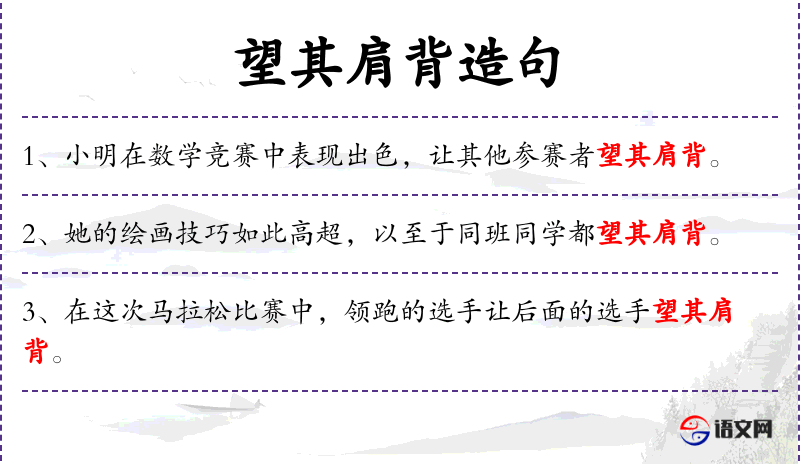 1. 【望其肩背】 - 犹望其肩项。形容赶得上或达得到。