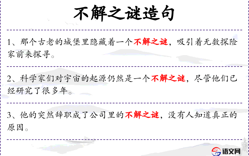 - 不解之谜:名词短语,指难以理解或解释的事物。
