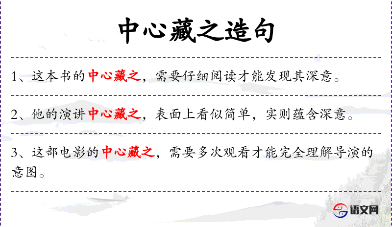 句子:“这个故事的中心藏之,情节的发展背后有着更深层次的寓意。”