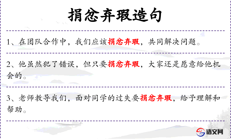 - 捐愤弃瑕:指放弃怨恨和缺点,是一种积极的人生态度和行为。