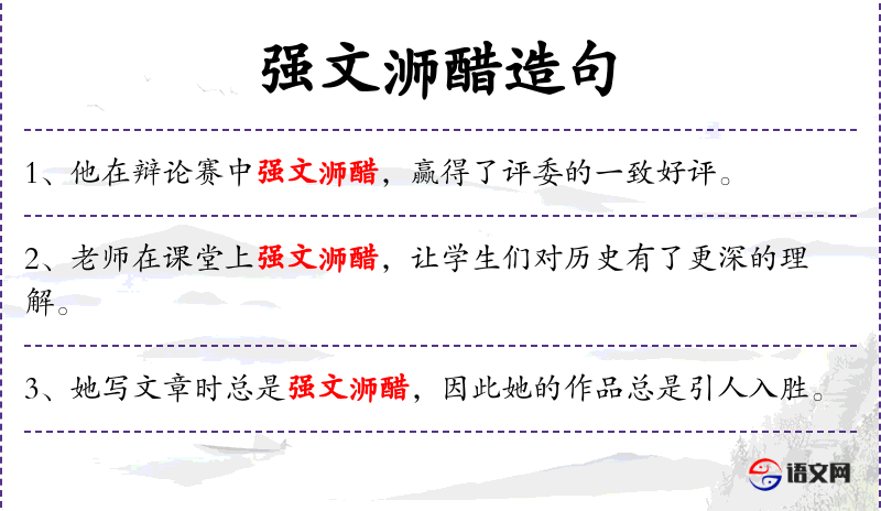 “强文浉醋”是一个成语,源自古代文学批评,用来形容文章写得生动有力。这个成语体现了中文中对文学作品的评价标准,即不仅要有内容,还要有表达的力度和感染力。