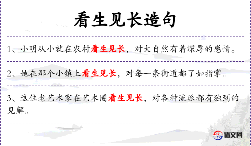 2. 【看生见长】 亲眼看着某人的出生和长大。形容对某人非常熟悉。