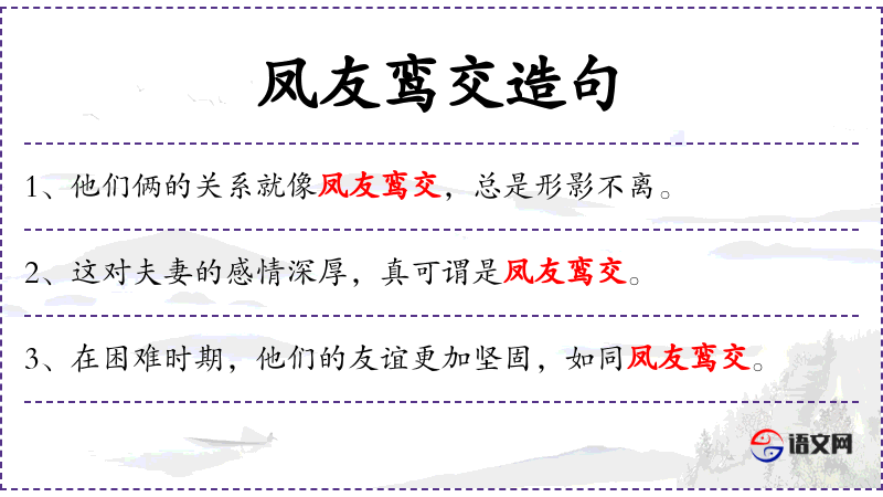 - 凤友鸾交:这个成语源自**古代神话,凤和鸾都是传说中的神鸟,象征着吉祥和美好。在这里用来比喻男女之间非常亲密的朋友关系,强调了关系的纯洁和美好。