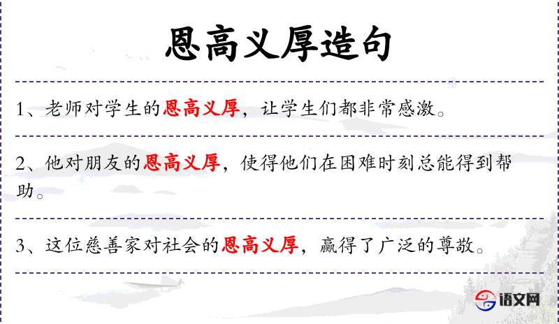 - 恩高义厚:仁厚、恩重如山