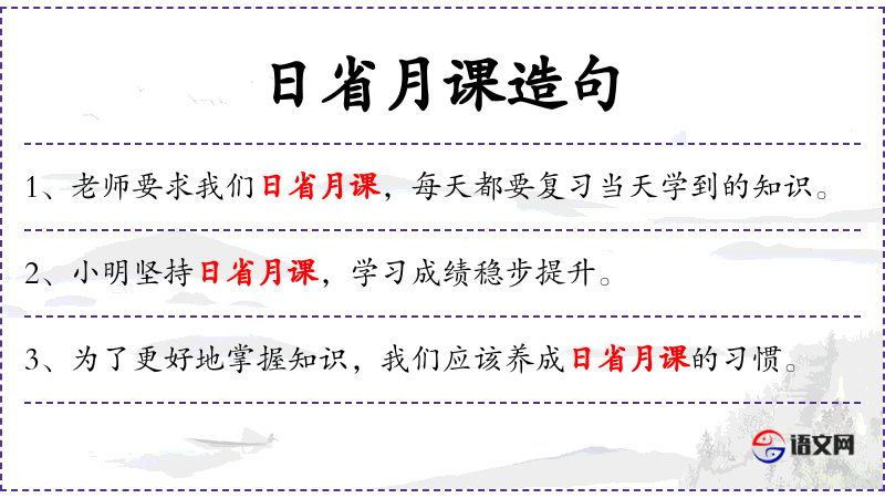 - “老师期望我们每天复当天所学的知识,以日省月课的方式持续学。”