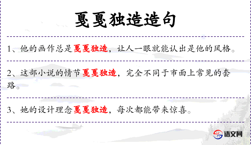- 戛戛独造:形容词,意为独特、新颖,常用来形容艺术或技术上的创新。