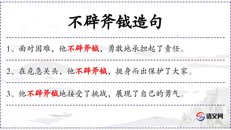 - 不辟斧钺:成语,意为不躲避困难和危险。