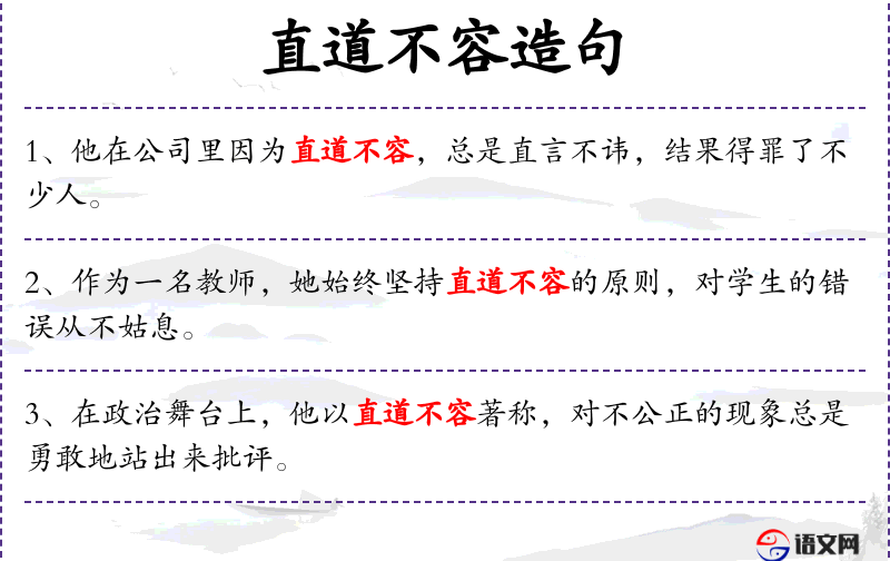 1. 【直道不容】 - 按正直的道理行事而不被社会容纳。