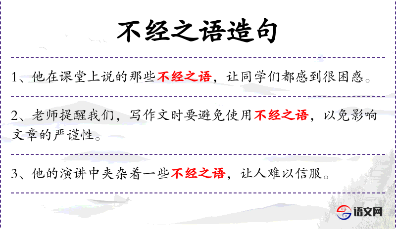 - 不经之语:名词短语,指不经过深思熟虑或不合逻辑的话语。