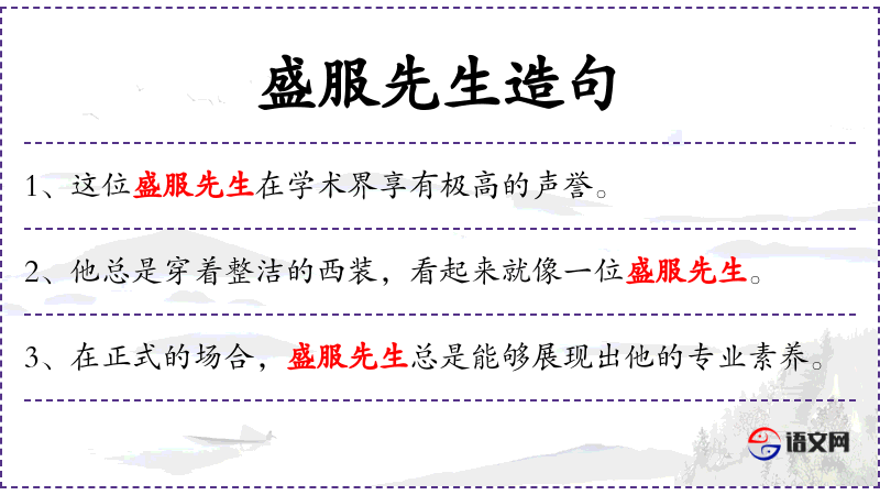 1. 【盛服先生】 - 指戴儒冠,穿儒装,衣冠齐整的文人。