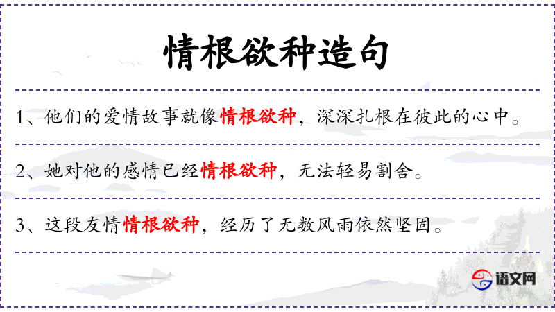 句子中的“情根欲种”使用了比喻手法,这种表达在**文化中常见,用以形容情感的深厚和持久。