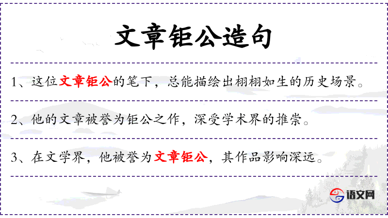 句子:“这位文章钜公的作品,总是能够触动读者的心灵深处。”
