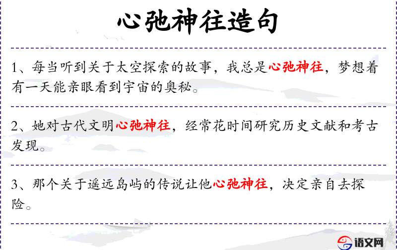 - 心弛神往:成语,形容内心非常向往。
