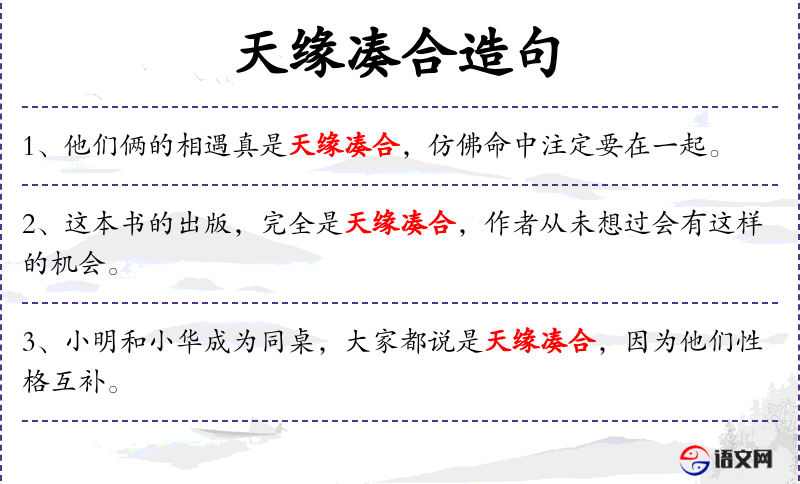 - 天缘凑合:这个成语体现了**文化中对命运和巧合的看法,认为某些事情的发生是天意或缘分。
