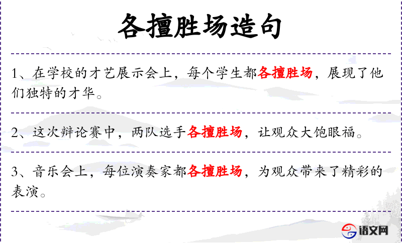 - 各擅胜场:每个人都有自己的专长或优势。