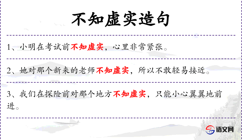 - 不知虚实:表示对某事的真相或实际情况不清楚,不确定。