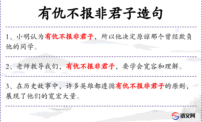 5. 【有仇不报非君子】 有仇不报不算大丈夫。形容人气质刚毅。