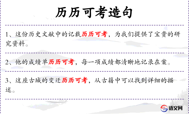 - 历历可考:意思是“清晰可见,可以查证”。