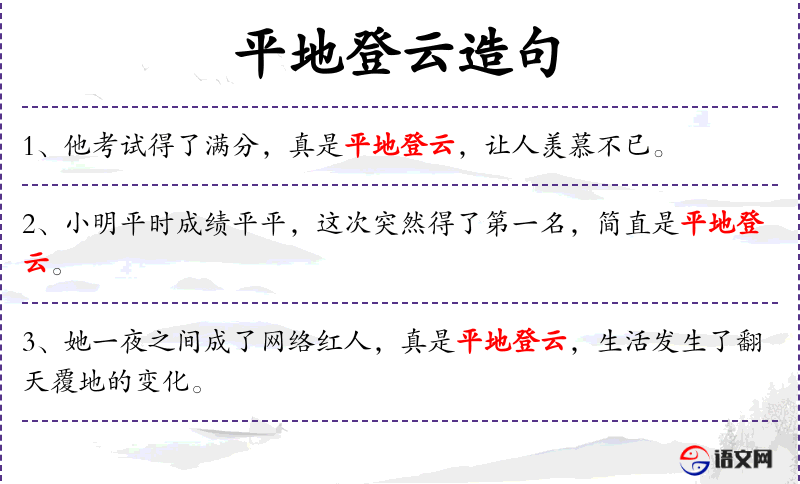 - 平地登云:这个成语源自**传统文化,用来形容人的地位或境遇突然提升。